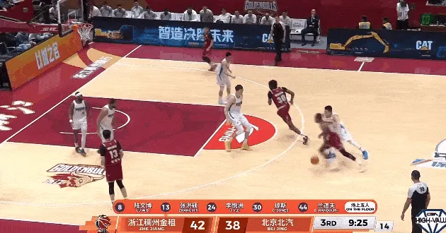 CBA常规赛,浙江对阵北京的比赛正在进行中。